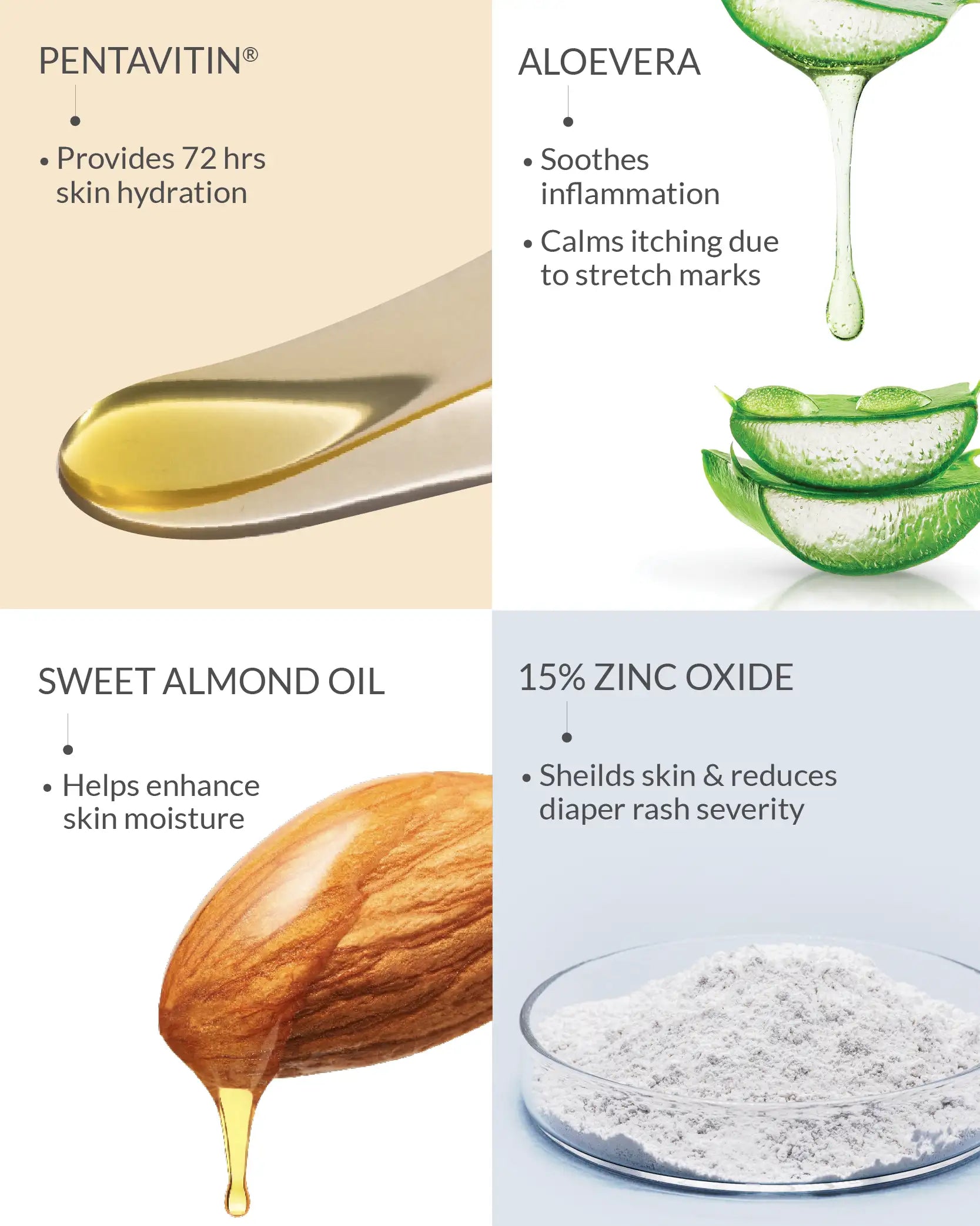 Unscented Diaper Rash Cream:Zinc Oxide, Aqua, Caprylic/Capric Triglyceride, Glycerin, Polyglyceryl Polyricinoleate, Manihot Esculenta (Tapioca Starch), Helianthus Annuus (Sunflower) Seed Oil, Magnesium Sulphate, Avena Sativa (Oat) Kernel Flour, Gluconolactone (&) Sodium Benzoate, Sodium Chloride, Hydrolyzed Milk Protein, Sodium Gluconate.