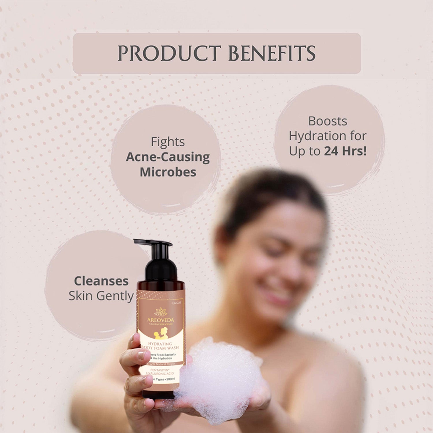 Hydrating Body Foam Wash: Aqua, Coco Glucoside, Cocamidopropyl Betaine, Glycerin, Caprylyl/Capryl Glucoside, Coffea Arabica Seed Powder, Trehalose, Potassium Sorbate, Sodium Benzoate, Aloe Barbadensis (Aloe Vera) Leaf Powder, Citric Acid Monohydrate, Coffea Arabica (Arabian Coffee) Seed Oil, Hydrolyzed Milk Protein, Saccharide Isomerate (&) Aqua (&) Citric Acid (&) Sodium Citrate, Sodium Gluconate, Sodium Hyaluronate LMW, Dipotassium Glycyrrhizate